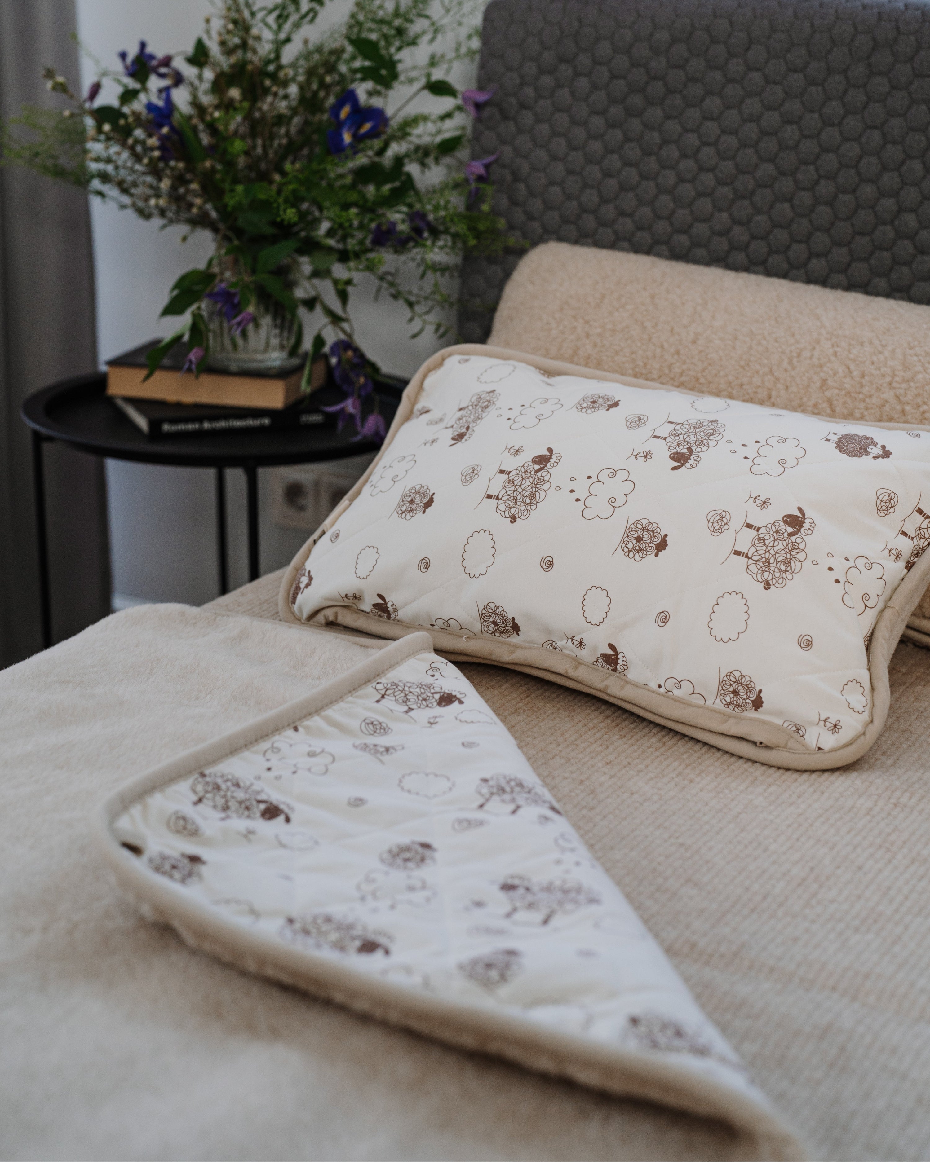 Wolle ist ein natürlicher Temperaturregler – sie wärmt, wenn es kalt ist, und bleibt angenehm kühl, wenn es wärmer wird. Die Mischung aus Merino- und Kamelwolle sorgt für zarte Stärke und Elastizität, sodass die Decke immer angenehm bleibt, ohne zu beschweren.