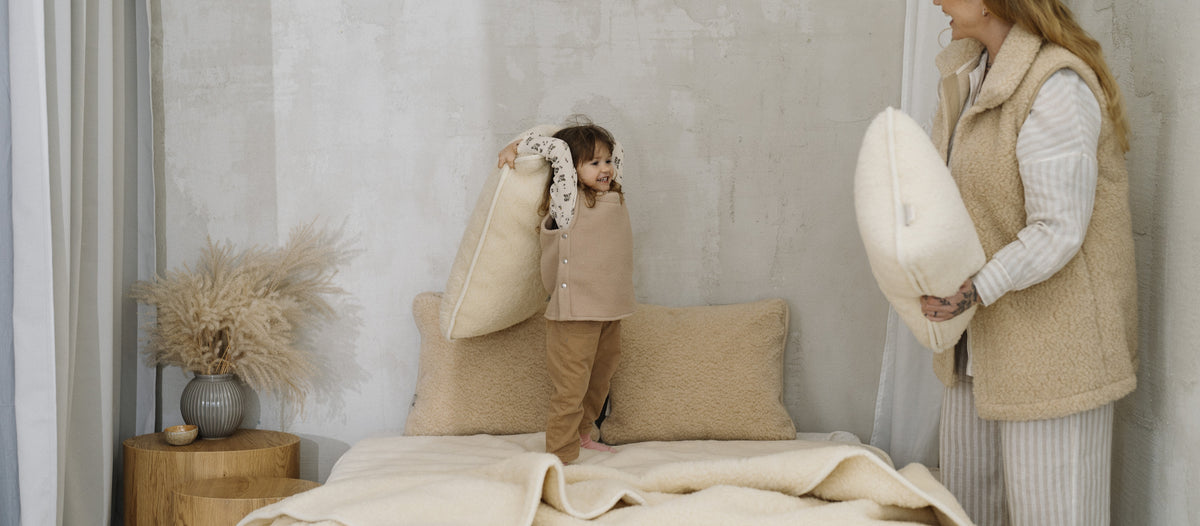 Im Gegensatz zu Kunstfaserdecken behält echte Wolle über Jahre ihre Schönheit und ihren Komfort. Sie speichert keine Gerüche, sondern lässt die Luft zirkulieren. Jede Decke ist auf Langlebigkeit gefertigt – sie wird mit der Zeit noch weicher und gehört bald einfach zum Alltag dazu.
