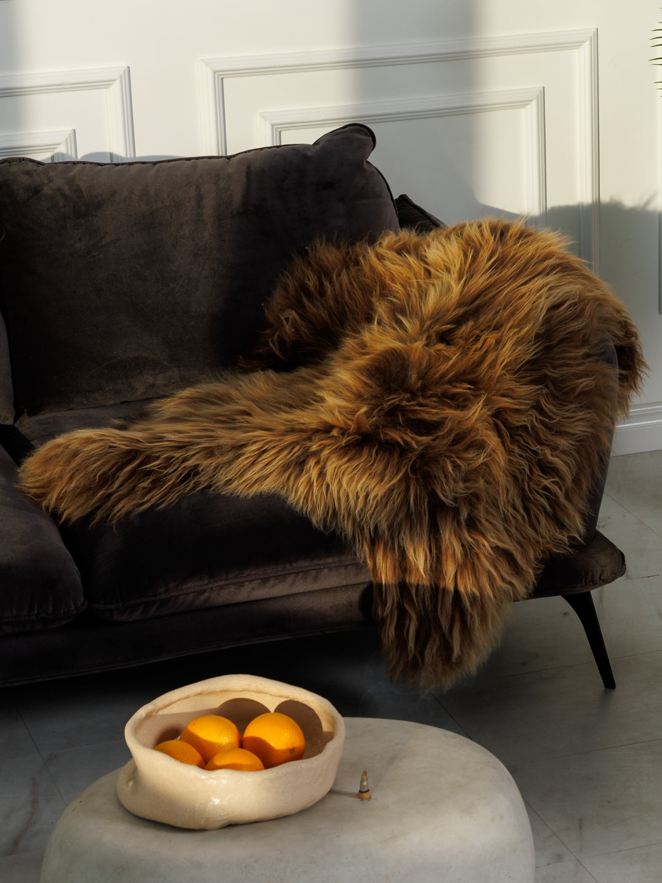 Die isländischen Schaffelle zeichnen sich durch ihr besonders langes und weiches Haar aus, das zwischen 12–18 cm liegt. Sie stammen von einer alten Schafrasse, die bereits von den Wikingern nach Island gebracht wurde. Dank ihres widerstandsfähigen Fells haben die Tiere den Menschen dort über Jahrhunderte Wärme und Schutz geboten.